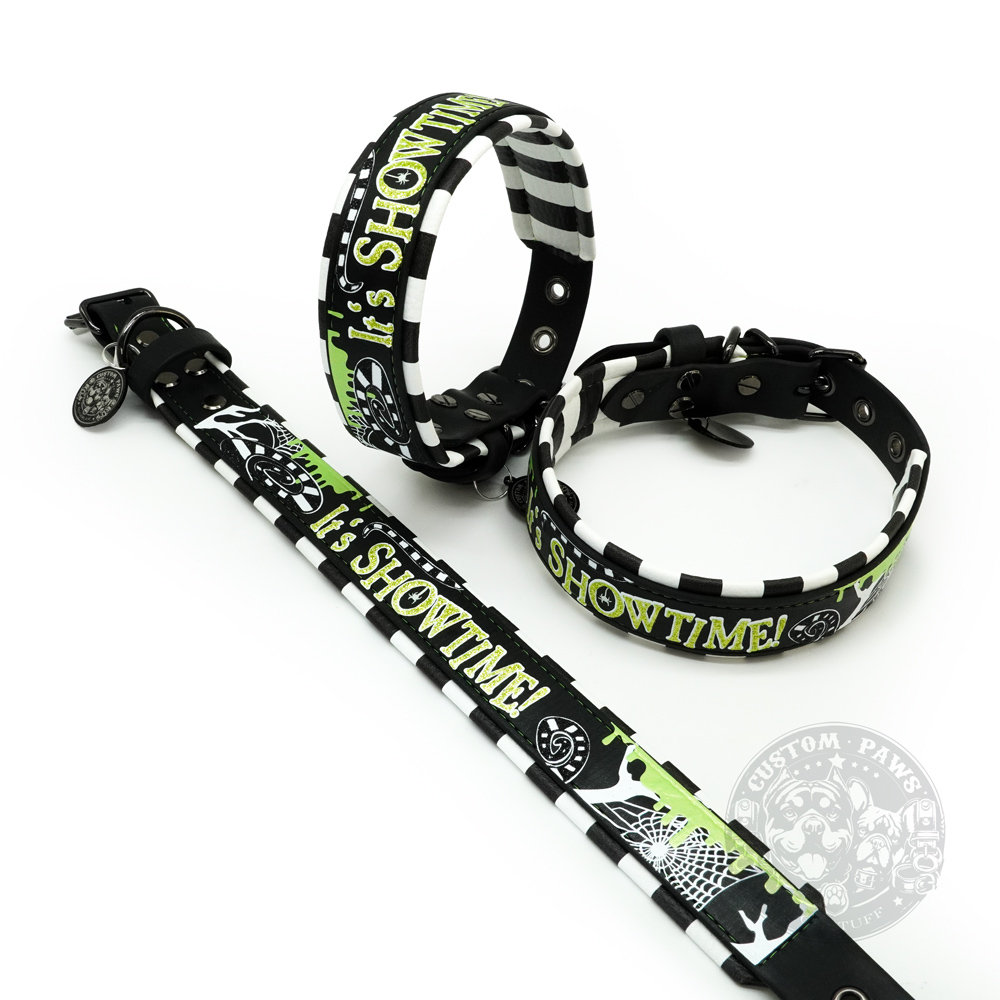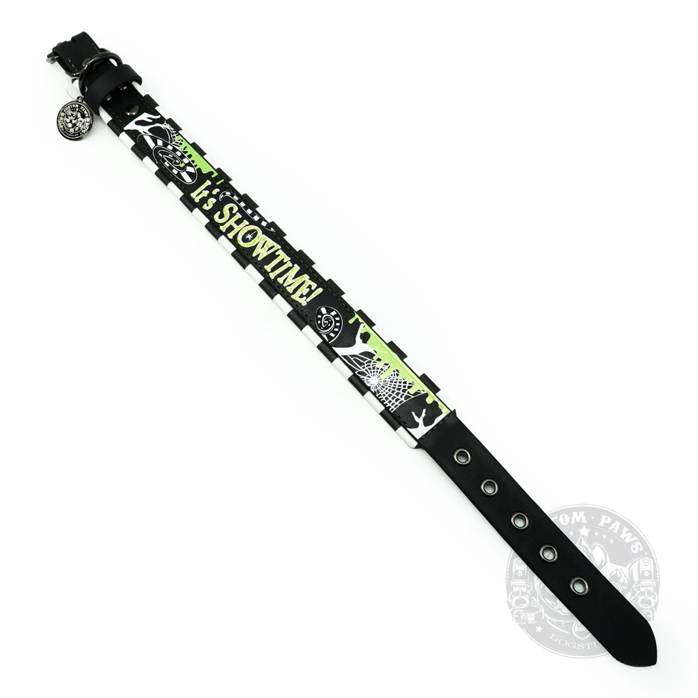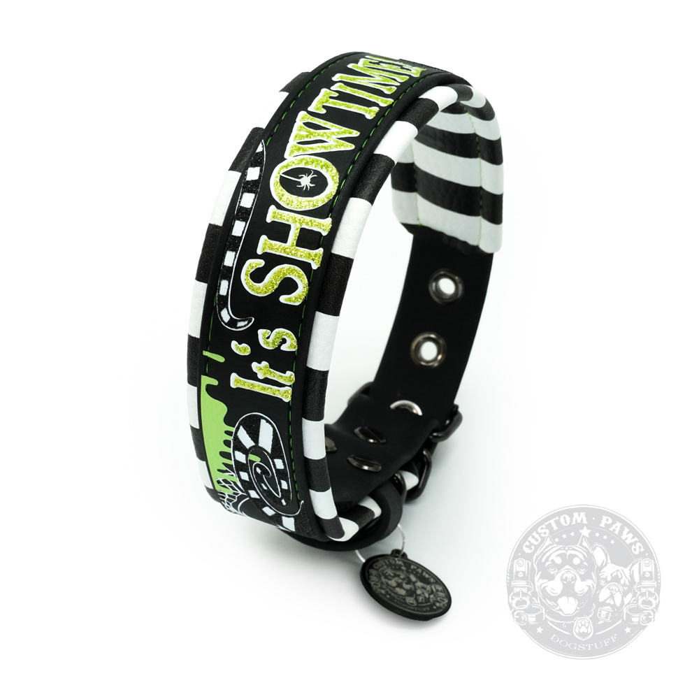 Das Halloween Halsband „Barkjuice“ ist kein gewöhnliches Accessoire – es ist wie ein Tor in eine verrückte, magische Welt, in der Streifen tanzen, Augen starren und Spinnennetze im Mondlicht glitzern.